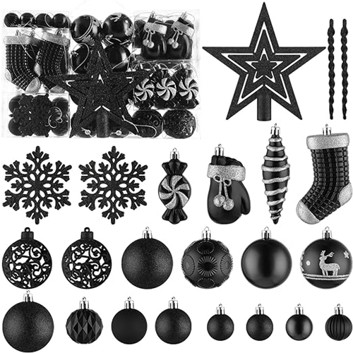 128 PCS Christmas Balls Decoration Christmas Baubles, Assorted Shatterproof Black