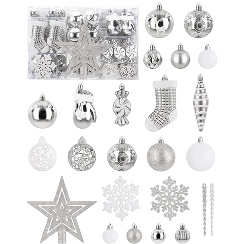 128 PCS Christmas Balls Decoration Christmas Baubles, Assorted Shatterproof Silver