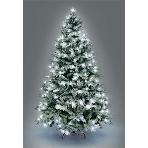 7Ft Pre-Lit Lapland Fir Artificial Green Christmas Tree Snow Flocked Metal Stand White LEDs